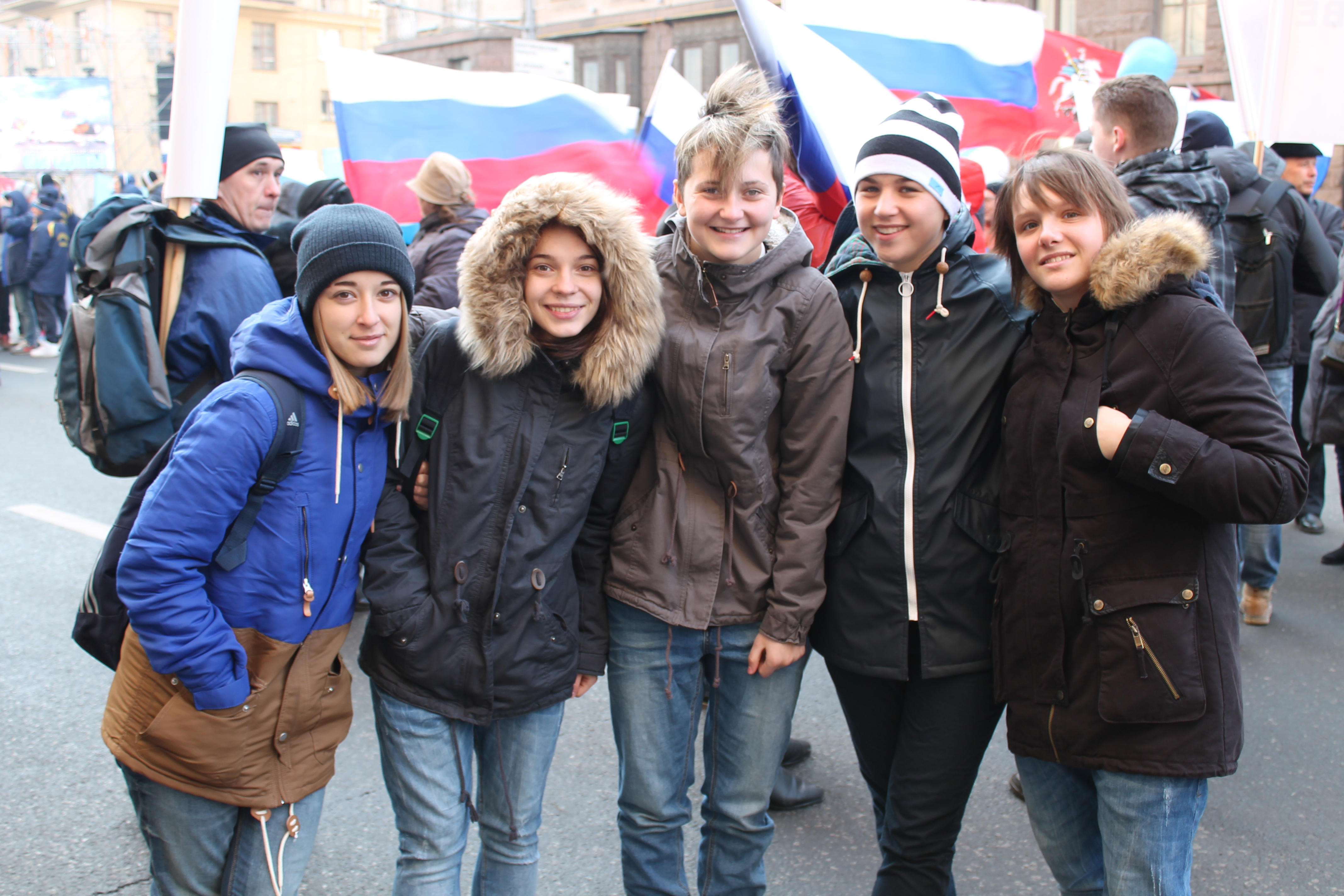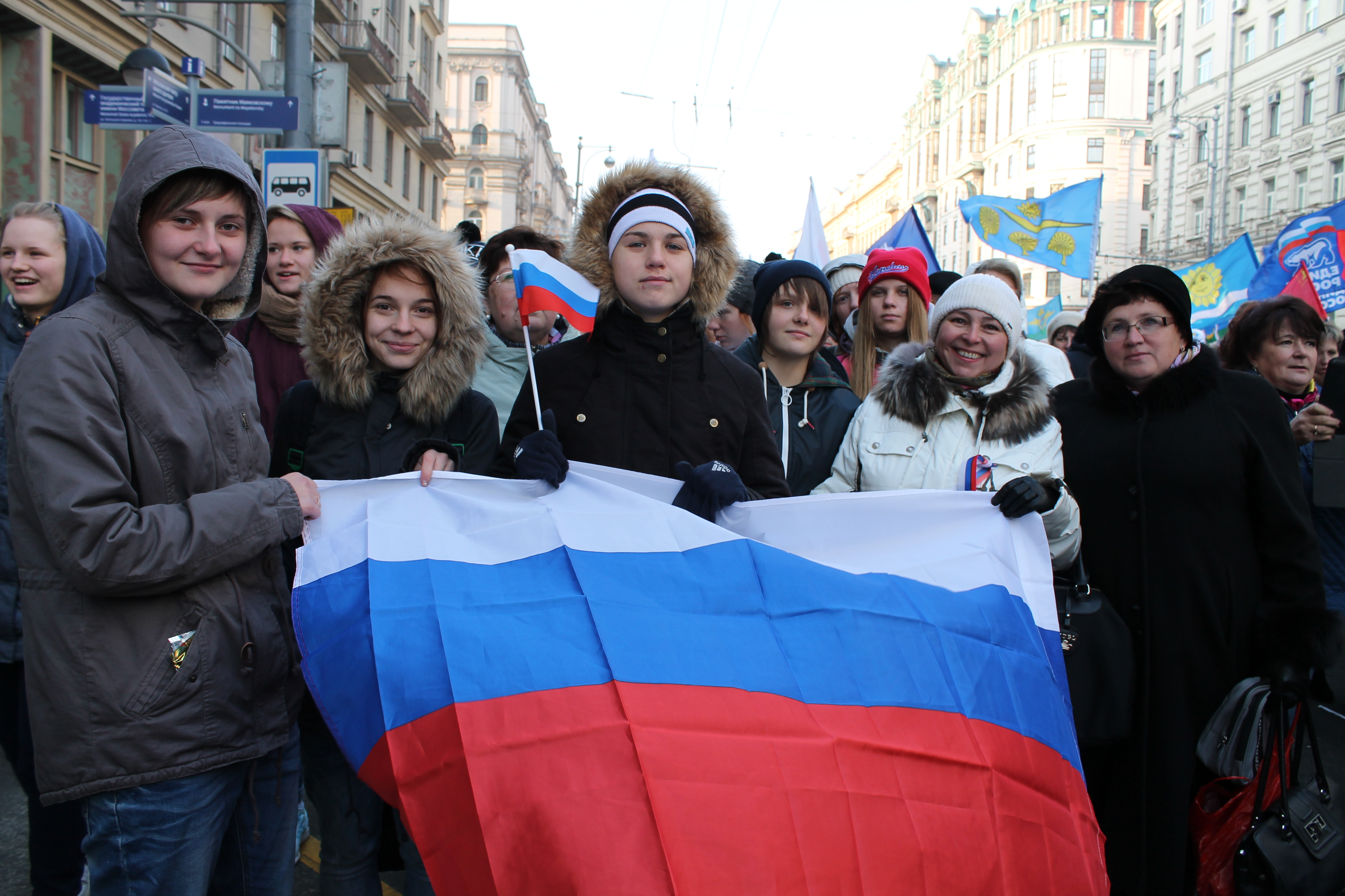 Колонны митингующих пестрели флагами и лозунгами, утверждающими единство многонационального российского государства «Мы едины!», «Нас много, Родина одна!», «Где мы, там Россия!». Вместе с Училищем шли и представители партии «Единая России» г.о.Звенигород.