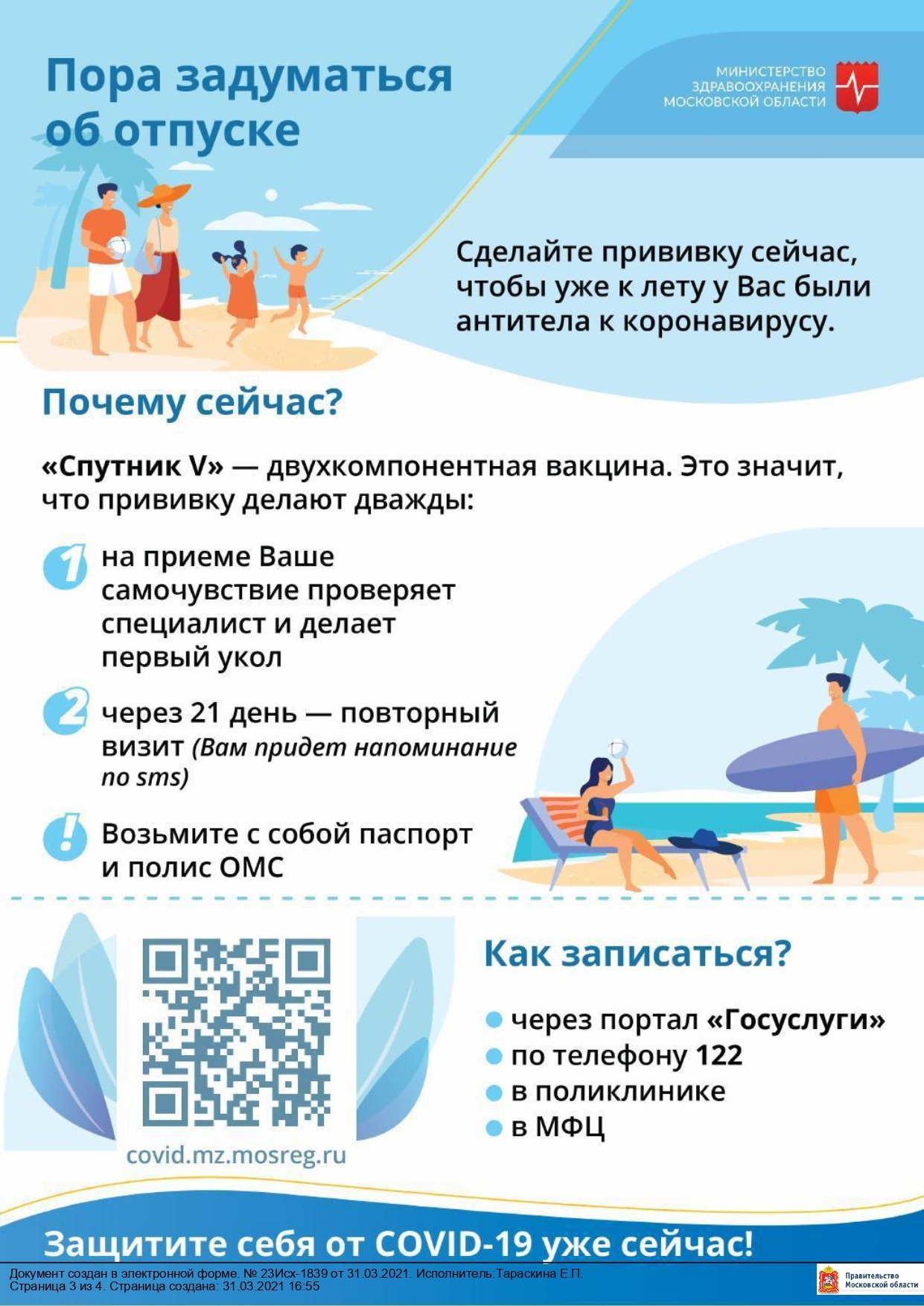Записаться на вакцинацию от Covid-19 можно через портал Госуслуг, по телефону «122» и в МФЦ.